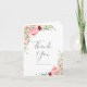 Elegant blush pink watercolor floral arrangements, wedding thank you card.