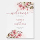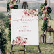 Modern rustic bohemian watercolor botanical cherry blossom wildflowers with foliage dusty rose pink bouquets making a chic spring summer garden elegant custom wedding welcome sign with a trendy handwriting calligraphy script in a pastel delicate color palette. ++++++++++++++++ Easy to personalize it with your details!