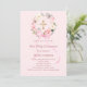 Blush pink florals bow cross First Communion Invitation