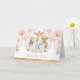 This adorable folded thank you card features a collection of pretty jungle animals and feminine blush pink flowers.