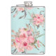 Gorgeous blush pink watercolor flowers are blooming against a light blue background.