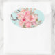 Blush Pink Flowers on Light Blue Oval Sticker