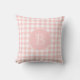 Blush Pink Gingham Pattern Custom Monogram Throw Pillow