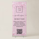A blush pink background, with glitter dust. With the text: We are open. Personalize and add your own business logo, opening hours, your own qr-code to your website.