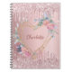 A blush pink metallic looking background. Faux glitter drips, paint dripping look as decoration. A golden heart decorated with pink flowers. Personalize and add a name. The name is written a modern dark rose gold colored hand lettered script. Perfect for school homework, back to school.
