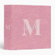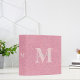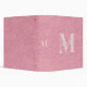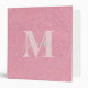 On front: Girly blush pink faux glitter background. Templates for a name and Your monogram letter. The name is writen in white with a hand lettered style script. The monogram letter in light pink written with a large bold block letter.