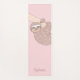 This pretty yoga mat is decorated with a smiling blush pink glitter sloth hanging from a branch.
