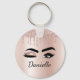 Rose Gold - Blush Pink Faux Foil Metallic Sparkle Glitter Brushed Metal Monogram Name and Initial Eyelashes (Lashes), Eyelash Extensions and Eyes Blush Pink Keychain. The design makes the perfect sweet 16 birthday, wedding, bridal shower, anniversary, baby shower or bachelorette party gift for someonelooking for a trendy cool style.