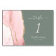 Blush Pink Gold Agate Deep Sage Green Wedding Table Number