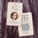 This elegant and glamorous design features an elegant script typography, a round photo (replace it with a square picture for best results), many social media icons and a QR code to personalize with your website or blog. The social media icons can be moved or deleted by using the design tool.