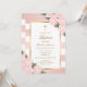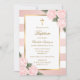 Elegant blush pink floral baptism invitation with a gold cross and a frame adorned with blush roses and baby's breath.