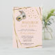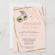 Elegant Masquerade sweet 16 Birthday party invitation featuring watercolor painting of gold and pink mask with gold star confetti and gold border on blush pink background.