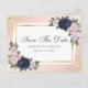 Blush Pink Gold Navy Blue Floral Wedding Announcement Postcard