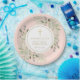 Featuring delicate watercolor greenery leaves on a blush pink background and an elegant gold crucifix, this chic holy communion plate can be personalized with your special event information. Designed by Thisisnotme©