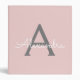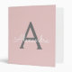 Blush Pink Grey Modern Script Girly Monogram Name 3 Ring Binder