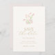 Elegant, fresh and modern. This beautiful and stylish 'save the date' card features a whimsical line drawn floral bouquet and a contemporary set of fonts in faux gold, against a light ivory white background. The back includes optional couple initials, against a light chic blush pink background. Variations of this design are available in the full collection.