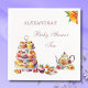 Add a touch of charm to your celebration with these personalized, whimsical Baby Shower Tea Party paper napkins. This delightful design features a floral teapot and teacup alongside a whimsical cake stand filled with delicious cupcakes topped with soft pink and yellow icing and sweet red cherries, all set against a crisp white background. Elegant lilac typography and script fonts complete the look, making these napkins the perfect addition to your tea party baby shower. A lovely way to honor the mom-to-be and create a beautiful, memorable table setting for guests. Ideal for adding a whimsical and elegant touch to your special day.