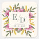 Blush Pink Lily Botanical Wedding Monogram Square Sticker