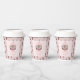 Adorable personalized Fall baby shower paper cups for baby girl. Features a cute hand-drawn cherry pie and a pattern of adorable tiny pink hearts against a soft blush pink background. Personalize with baby girl's name, event and date on front and back. Ideal for Fall baby shower, November birthday, 1st birthday, Valentine's day, and baby's 1st Thanksgiving.