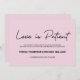 The design features a combination of simple black and blush pink typography, creating a modern and elegant style. The words "Love is Patient" serve as a reminder of the enduring love between you and your partner, while also conveying the message of patience and understanding during this time.