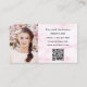 Back: Personalize and add your photo, name, title, phone number, mail, website adsress, qr code to your website. Purple letters. Without glitter on the back.