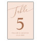 Minimal and elegant wedding table number featuring modern script text that says "Table" at the top on a blush pink background.