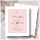 Looking for the perfect confirmation invitations to celebrate your special day? Look no further than these stunning invitations featuring a modern blush pink background with a white border and an ornate gold effect cross. The reverse side is adorned with a stripe design that adds a touch of elegance to your invitation.