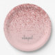 Blush Pink Modern Glitter Monogram Name Paper Plates