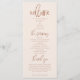 Modern minimalist wedding program featuring boho script font. Blush pink background with terracotta color texts. All the wedding ceremony information and the wedding party's name listed on this program.