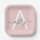 Blush Pink Modern Script Girly Monogram Name Paper Plates