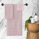 A beautiful set of blush pink bathroom towels with monogram pattern that can be customized to your name. The signature script font is classy and stylish.