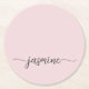 Blush Pink Monogram Name Script Chic Signature Round Paper Coaster