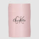 A blush pink metallic looking background. Personalize and add a name, your monogram initials. The name is written with a hand lettered style script.
