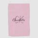 A pink background. Personalize and add a name, your monogram initials. The name is written with a hand lettered style script.