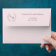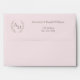 A soft blush pink colored background. Decorated with a wreath. Personalize and add your names, address and monogram, initials. Warm taupe colored text.