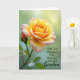 This card shows a close-up photo of one large flower placed toward the upper left, with petals that fade from golden yellow at the center to soft pink along the outer edges. Nearby, a smaller bud rises on its stem, echoing the same colors like a quiet companion leaning in close. The background is a softly blurred field of green tones with sunlit highlights, giving the scene a gentle, affectionate glow ❤️. Light falls across the petals to reveal smooth folds and subtle shadows, like a tender touch shared between loved ones. In the lower right, a flowing message reads “May Your Mother’s Day Blossom with Joy Grandma,” set in a dark, elegant lettering that stands out against the pale green blur. The words sit low and to the right, leaving the flower and bud to take center stage while still drawing the eye across the image. A small 🌼 accent can be added near the text to echo the floral theme without crowding the layout. The bloom’s warm yellow core is clearly visible, with pink-tipped petals curling outward against the soft green background.