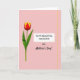This card features a single bloom on the left, its cupped petals shifting from deep red at the center to sunny yellow at the edges, like a warm blush shared between loved ones ❤️. A sturdy green stem supports two glossy leaves that curve upward, adding a gentle, caring touch to the scene. The background is a soft blush pink, keeping everything calm and tender, as if the flower is leaning in close for a quiet moment. Light falls evenly and softly, bringing out the petal texture and the subtle sheen on the leaves without harsh shadows. On the right side, the message sits inside a pale rectangular panel, giving the words room to breathe. “TO MY BEAUTIFUL DAUGHTER” appears at the top in a crisp, dark font, with “ON Mother’s Day!” placed below in a flowing, cursive-style look, and a small 🌼 feeling tucked into the warm color choices. Along the far right edge, a thin vertical row of tiny golden-yellow dots adds a delicate sparkle against the pink background.