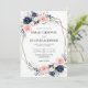 Blush Pink Navy Blue Floral Gold Geometric Wedding Invitation