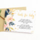 Slip these petite cards into your baby shower invitations when requesting books in lieu of cards. Watercolor floral design in blush pink and navy roses matches our Blush Pink, Navy & Gold Invitation collection. A sweet poem explains the book request. Personalize with the guest of honor's name and baby shower date at the bottom.