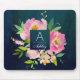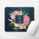 BLUSH PINK & NAVY Floral Bouquet Monogram Mouse Pad
