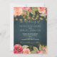 Blush pink navy gold romantic floral wedding invitation