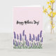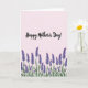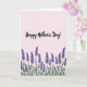 This card features a soft blush-pink background that sets a tender, romantic mood ❤️. Near the top center, a dark, flowing calligraphy-style message stretches across the page with smooth curves and generous spacing. The lettering feels like a gentle whisper on paper, drawing your eyes upward before guiding them back down. Along the bottom edge, a wide painted band of stylized flowers and stems creates a garden-like base, as if someone arranged blooms with care for a dear friend. The blossoms appear in layered purples and violet tones with delicate clusters and elongated stalks, adding a sweet, affectionate energy 🌼. The contrast between the deep floral colors and the pale backdrop makes the design feel intimate, like a quiet moment shared between two people. The floral band sits firmly at the lower margin, with purple petals and slender greenish stems forming a soft border across the base.