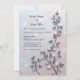 This wedding invitation features a graceful branch with muted blue and beige leaves, set against a soft pastel pink and pearl-toned background. The textured composition blends natural elegance with a dreamy, minimalist aesthetic. Perfect for modern, nature-inspired themes or designs that evoke serenity and subtle sophistication.