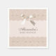 Personalize this exquisite Satin Bow Baby Shower paper napkin, perfect for those with a taste for elegance and timeless charm. These luxurious napkins feature a beautiful design set against a blush pink background, exuding a regency style that is sure to delight your guests. Adorned with a delicate beige lace border, these napkins are further embellished with a satin ribbon bow and pearls. The combination of these elements creates a look that is both refined and romantic. If you love Bridgerton, you will adore these baby shower napkins. Think bows, satin ribbons, pearls and elegant, vintage lace—every detail has been thoughtfully designed to add a touch of class to your special event. Elevate your Baby Shower Party, Lunch or Picnic with these stunning paper napkins, a perfect blend of elegance and regency era charm.