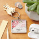 A refined blush pink peony floral keychain designed as a meaningful wedding thank you favor. Featuring soft watercolor peonies and elegant typography, this piece offers a timeless keepsake your guests will truly appreciate.