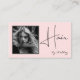 Blush Pink Photo Black Script Hair Stylist Business Card