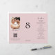 IMPORTANT NOTE: This trifold is supplied flat, WITHOUT pre-scoring. You will need to fold it yourself. To assist you with accurate folding, guidelines are printed on the back for the three panels, plus an extra thin panel to the right hand side for you to apply glue to stick the trifold together once you have folded it. Blush Pink All in One Photo Wedding Menu Table No Trifold. This handy DIY trifold combines your Table Number, Menu and Share the Love section with a QR code for your guests to scan and upload their pictures to your chosen website. The word "Menu" is in a set stylish script. Easily personalise the rest of the text as required and replace rhe sample image with your own. Change the sample URL of the QR code to that of your own URL and your QR code will automatically be generated to replace the sample code.