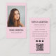 Showcase your brand with this elegant blush pink photo business card, perfect for photographers and creative professionals who love a soft, feminine aesthetic. The front highlights your portrait photo with clean typography, while the back includes organized contact details, social media icons, and a scannable QR code for instant portfolio access.