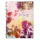 an original artistic illustration of floral abstract using firing golden colors for leaves and flowers against blush pink background notebook with monogram.
