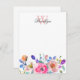 Blush Pink Purple Floral Teal Leaves Monogrammed Note Card